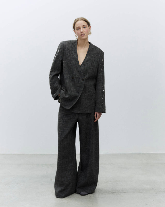 The model is 1.77cm / 5'10'' tall and wears a size 40 (IT)