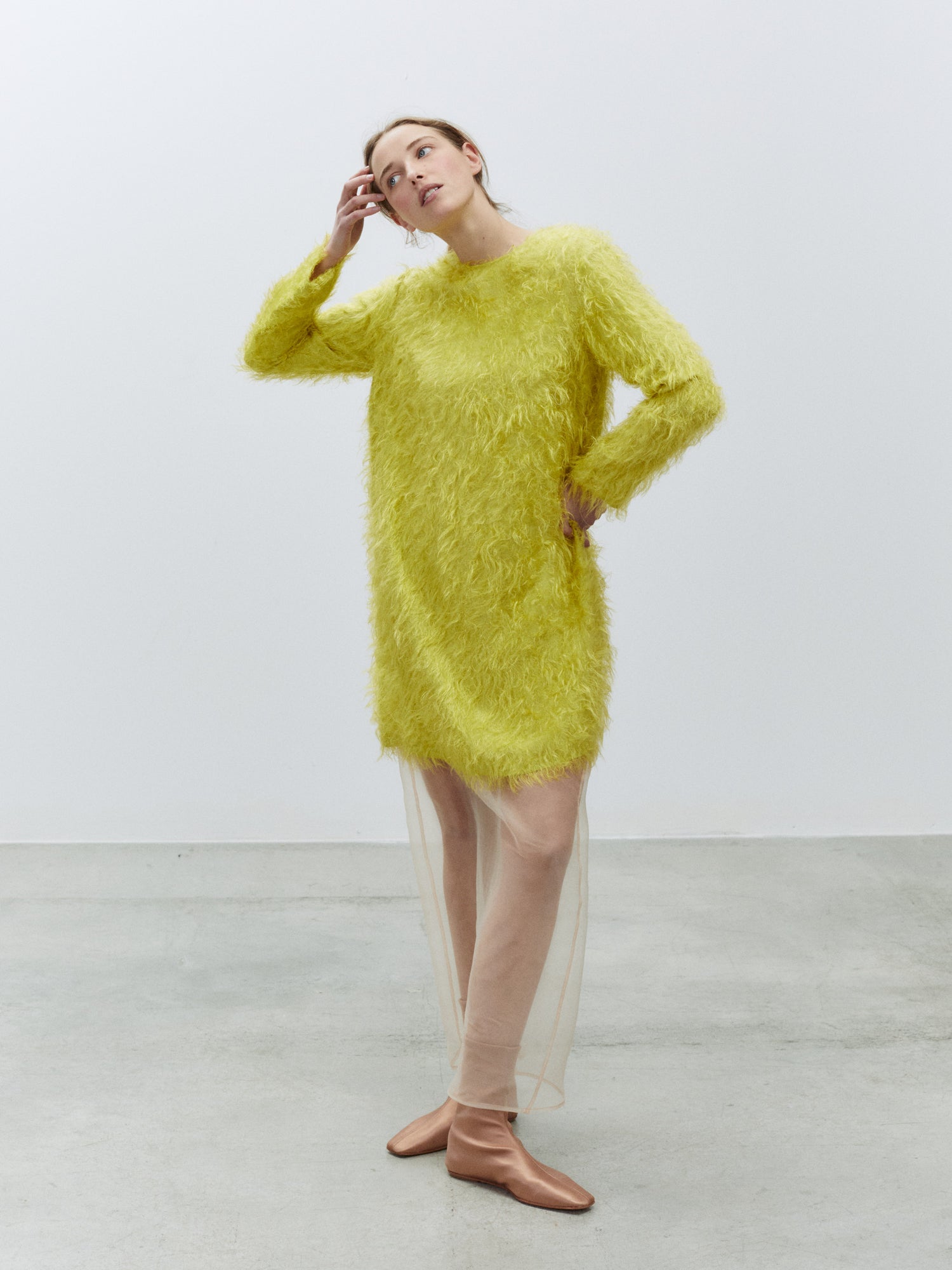 A contrasto, un giallo fluo irrompe nella collezione, accendendo capi speciali ad alto impatto visivo.