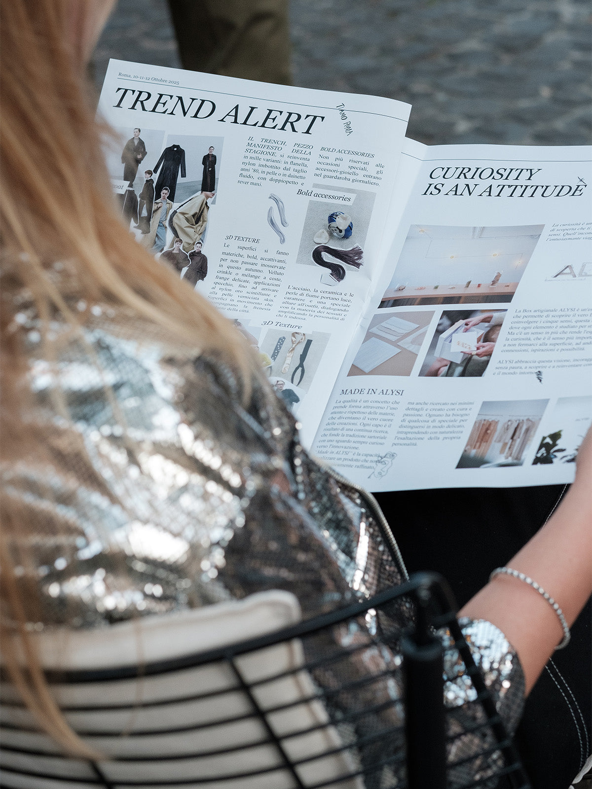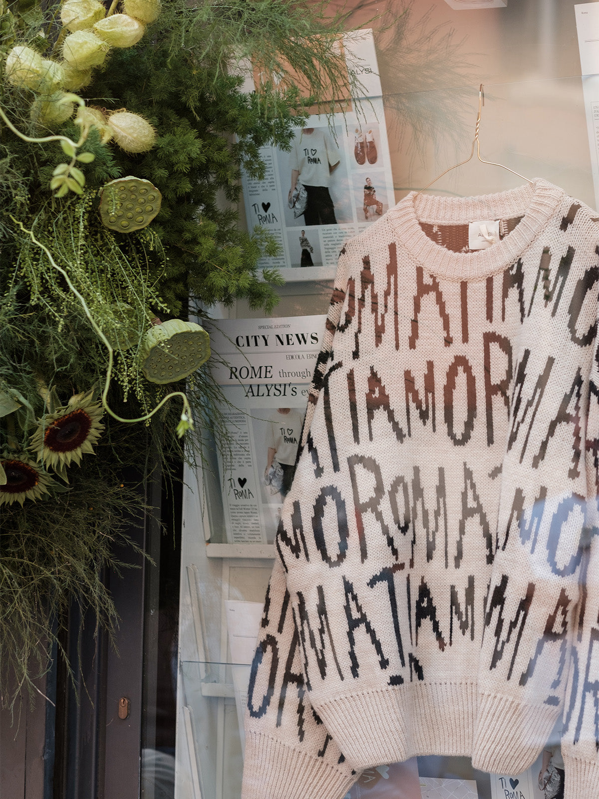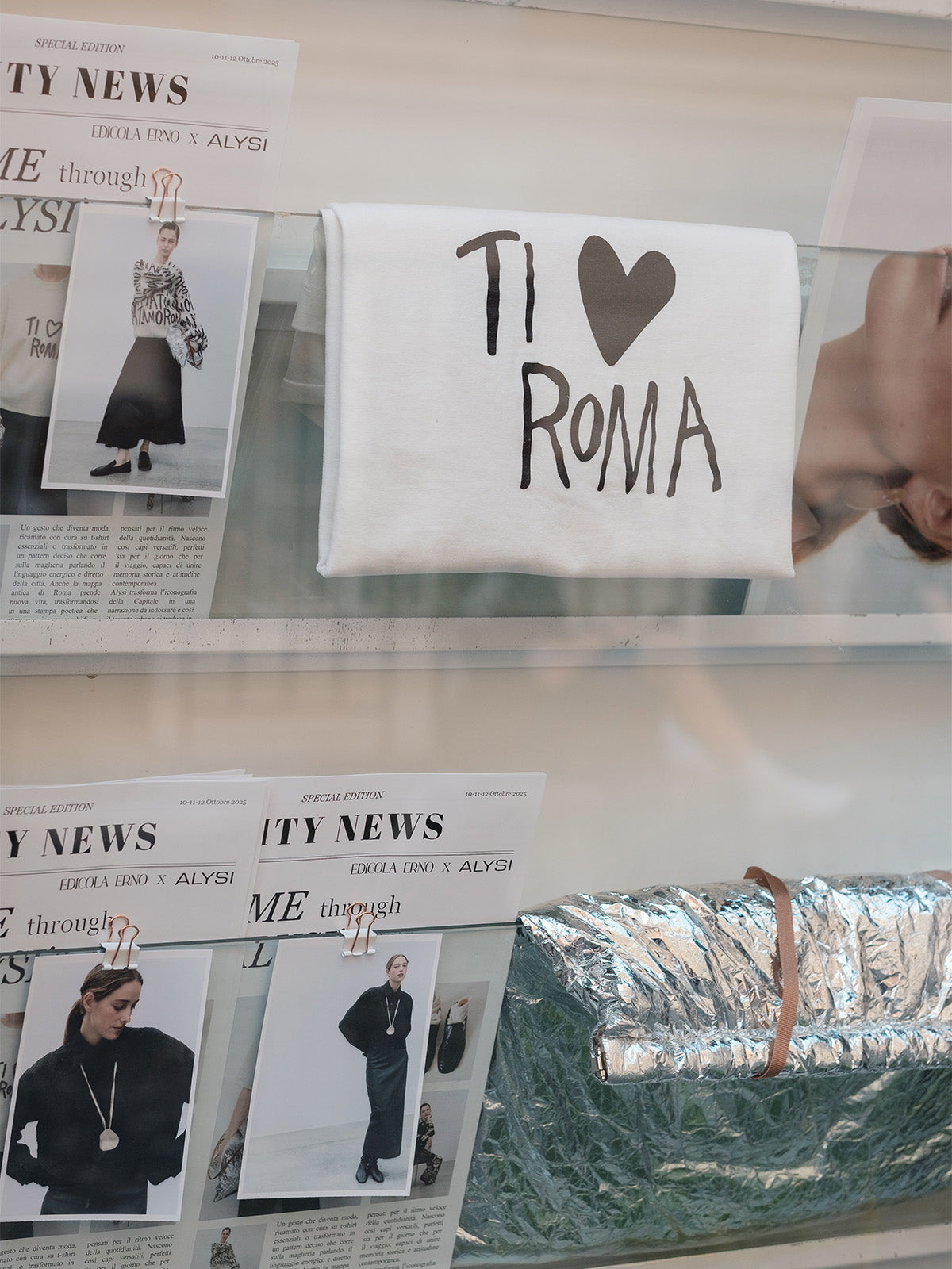 Un font diventa manifesto istintivo e volutamente imperfetto, come le scritte lasciate su un muro in una notte d'amore. Alysi trasforma l’iconografia della Capitale in una narrazione da indossare e così il tessuto urbano si traduce in stile.
