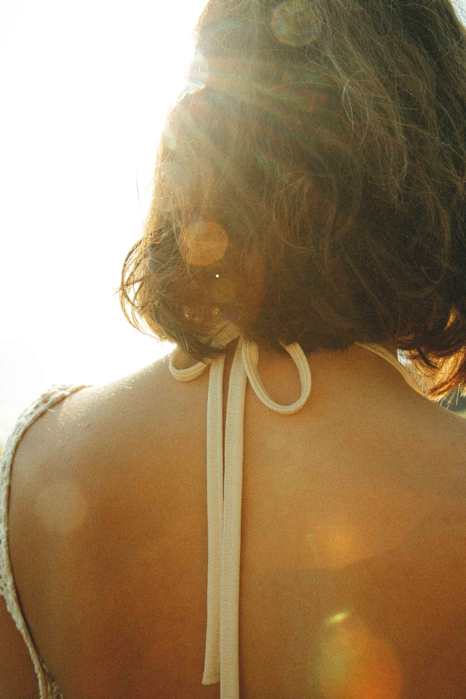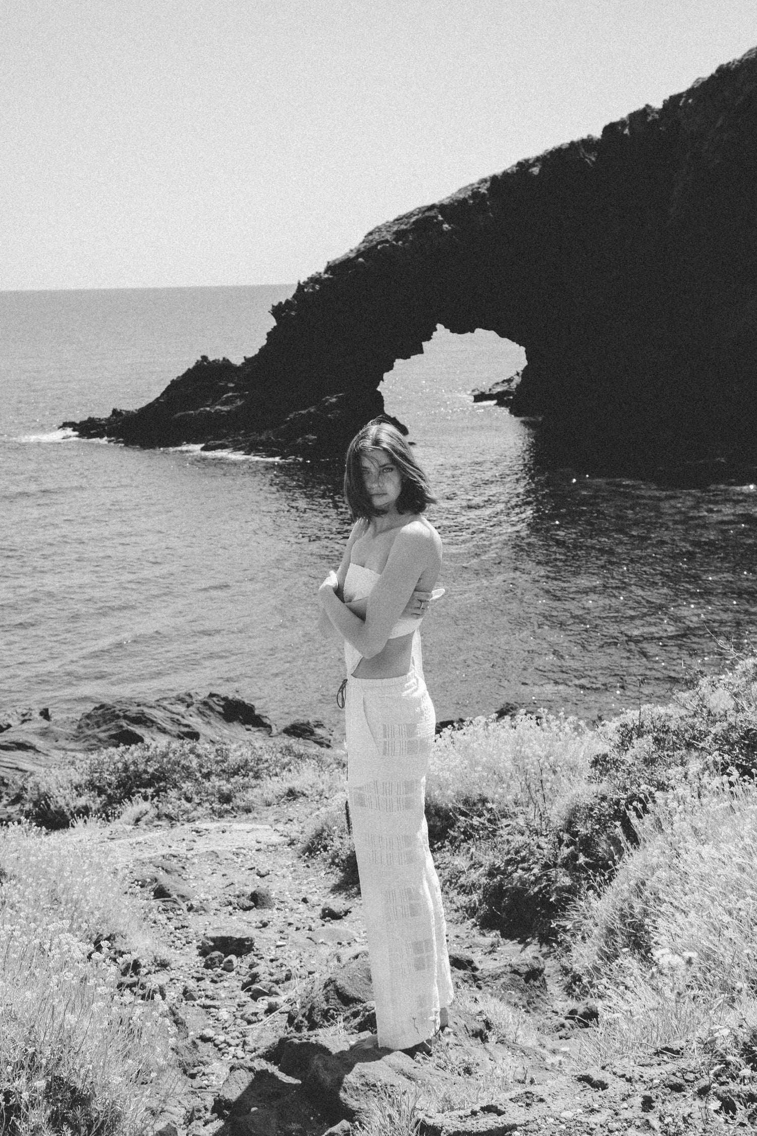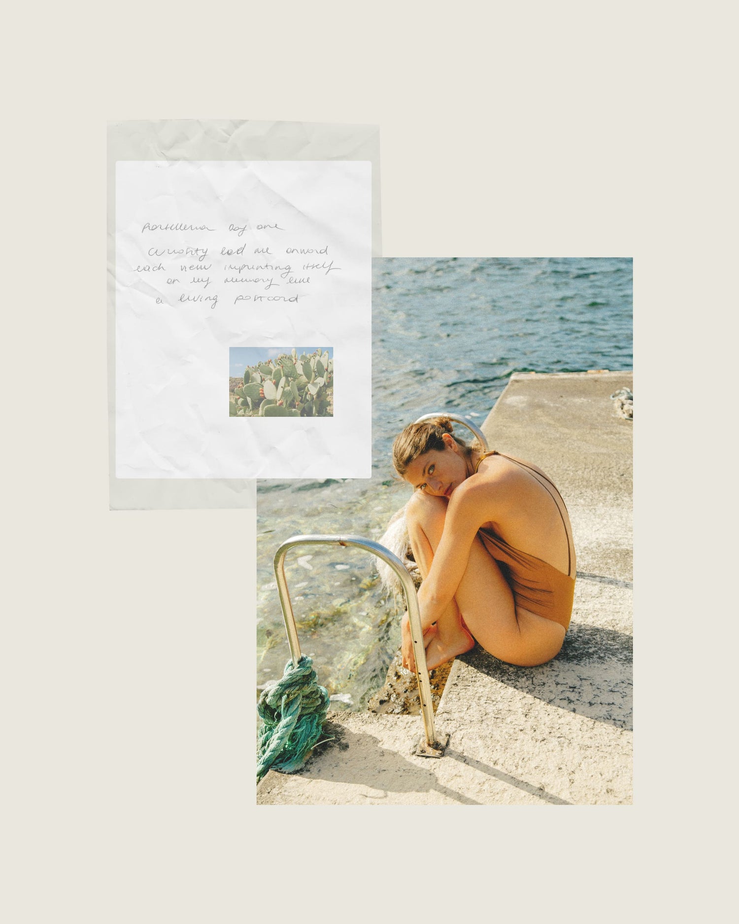 Avvolta nell’avorio fluido di Alysi, mi sono immersa nella calma turchese—ogni bracciata un dialogo tra corpo e mare.