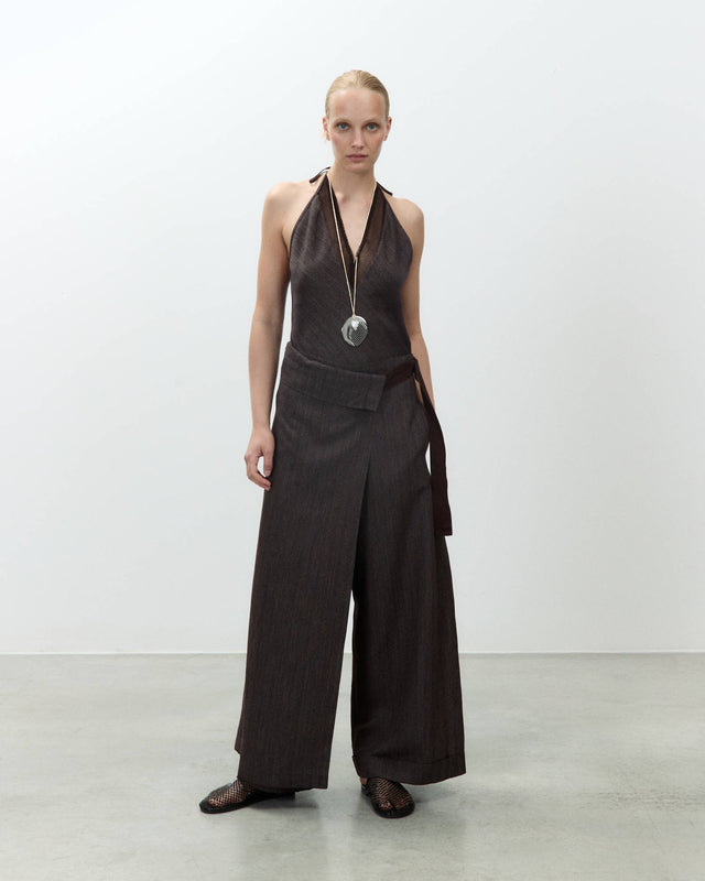 - Pantagonna in tessuto malfilè misto viscosa e lino