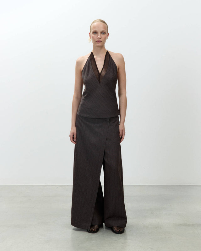 - Top in tessuto malfilè misto viscosa e lino